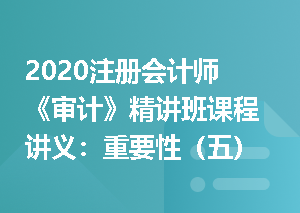 2020注册会计师《审计》精讲班课程讲义:重要性(一)