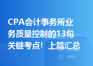 CPA会计事务所业务质量控制的13句关键考点!上篇汇总