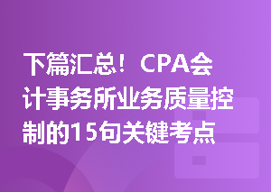 下篇汇总!CPA会计事务所业务质量控制的15句关键考点