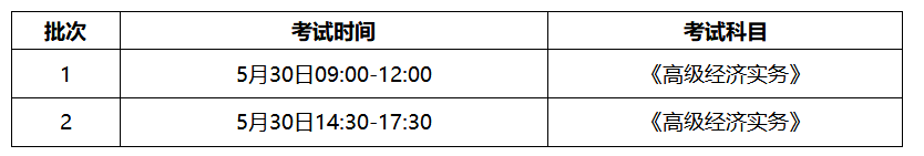 高级经济考试分为2个批次实施。具体考试时间及科目如下: