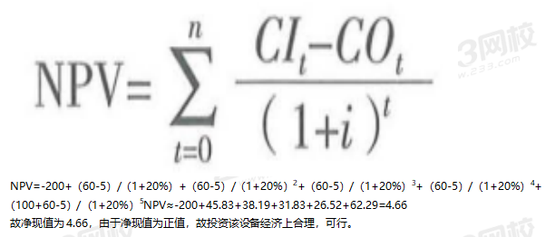3.净现值的具体计算公式为: