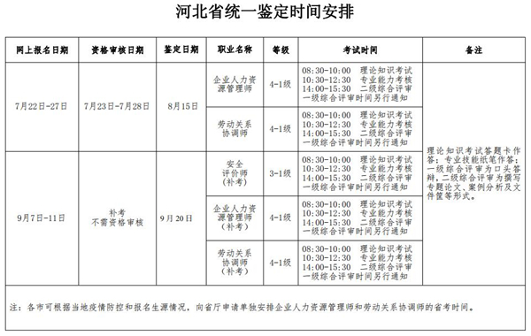 据了解,2020年河北人力资源管理师考试时间分别为8月15日和9月20日,其中9月20日为补考鉴定时间。