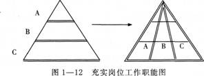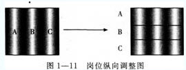 (1)岗位工作纵向调整。将同一或相似相近的岗位,由横向分工改为纵向分工,提高岗位技术和技能含量(如图1一11所示)。