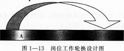 (4)岗位工作轮换设计。将原来若干不同岗位的工作任务,交给若干员工去完成,每个员工在某个岗位上连续工作一周之后,再转到下一个岗位去工作,以此类推,实现工作轮换。某个员工每周从事某一特定岗位的工作,在一个月内至少作了四种不同岗位的工作,扩展了岗位的技术含量,增加了员工工作兴趣和新鲜感,如图1一13所示。
