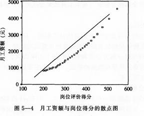 由图5—4可见,月工资额与岗位评价得分基本呈线性关系,可用一元线性回归方法进行分析。