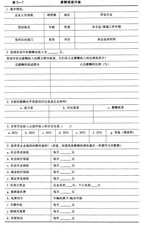 表5—7是一份经过认真设计的薪酬调查问卷,可供读者参考。
