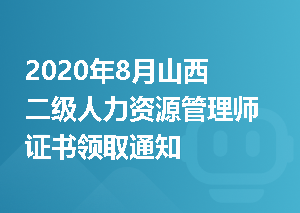 江苏职业技能鉴定指导中心发布《关于发放2020年8月山西省职业资格统一鉴定证书的公告》得知,2020年8月山西二级人力资源管理师证书领取通知。具体如下:2020年8月山西省职业资格统一鉴定证书(企业人...