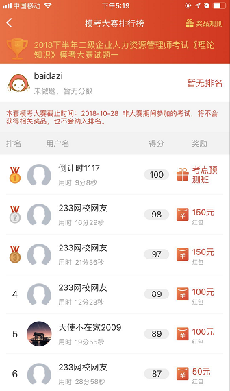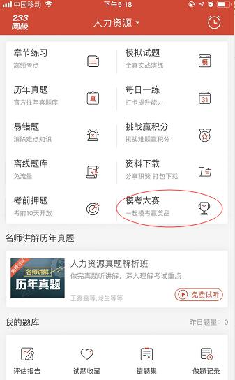 人力资源管理师在考前,233网校APP上会组织大规模模考大赛,测测你掌握的怎么样了,同时还有丰厚的奖品,免费课程送你,考前帮你巩固考点,为通关加分。