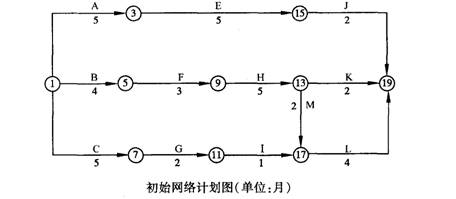 某工程项目合同工期为18个月。施工合同签订以后,施工单位编制了一份初始网络计划,如下图所示。并经监理工程师批准执行。