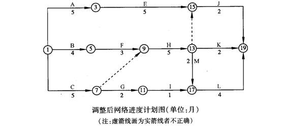 1.调整后的网络进度计划图如下图所示。