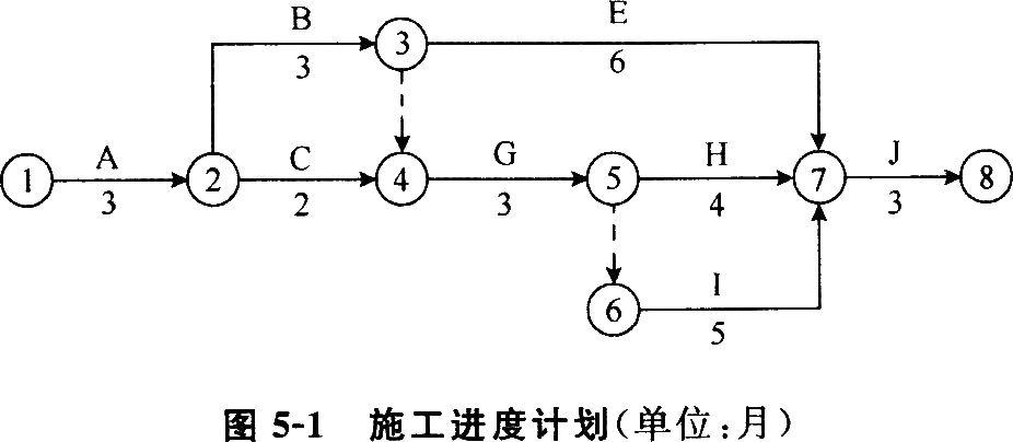 1、某实施监理的建设项目,承包商根据施工承包合同规定,在开工前编制了该项目的施工进度计划,如图5-1所示。经项目业主确认后承包商按该计划实施。