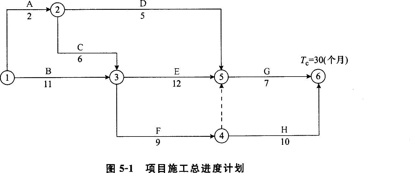 1.找出项目施工总进度计划(见图5-1)的关键线路。