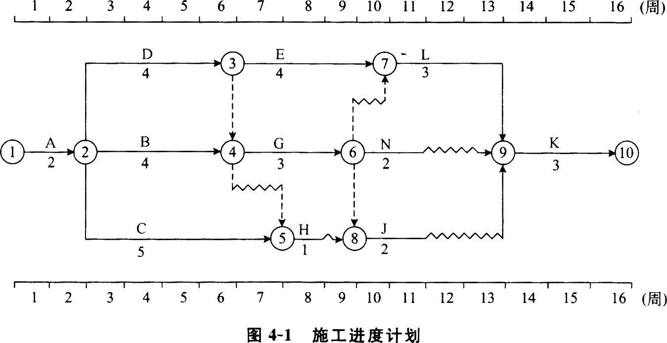 6、某工程的施工合同工期为16周,项目监理机构批准的施工进度计划如图4-1所示。各工作均按匀速施工。施工单位的报价单(部分)见表4-1。