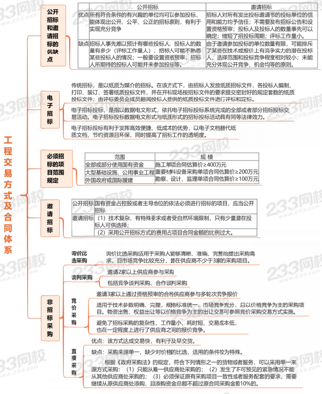 思维导图:工程交易方式及合同体系