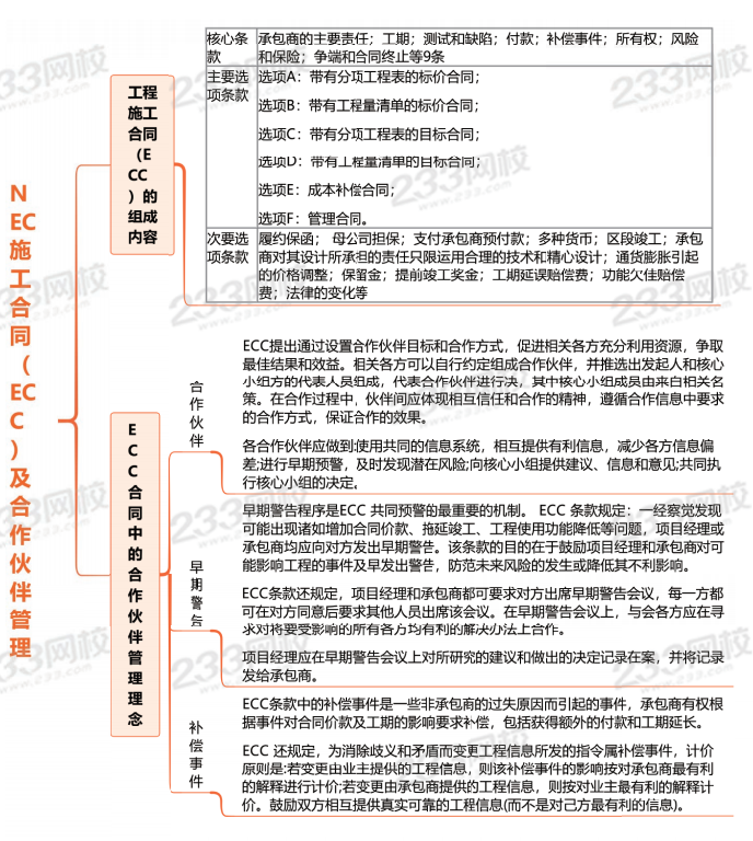 思维导图:NEC施工合同(ECC)及合作伙伴管理