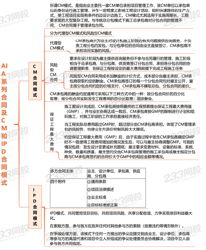 思维导图:AIA系列合同及CM 和IPD合同模式