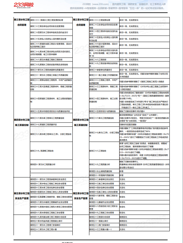 完整版《建设工程监理案例分析(水利》新教材变动对比请点击下方按钮下载阅读。