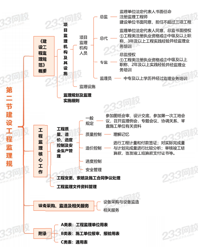 监理工程师考试教材动辄几百页,看一遍容易“前看后忘”。思维导图通过中心主题→主干→分支的结构,帮你建立知识间的逻辑联系,把书读薄。233网校已根据新教材整理2026《理论与法规》各章节思维导图,重要考点一个都不落下!