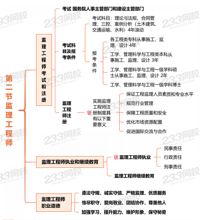 对于监理备考,思维导图是构建知识体系的高效工具。善用者能大幅提升复习效率,尤其在冲刺阶段,一张好的导图抵得过翻看十遍教材。建议重点标注高频考点和易混淆点(用不同颜色标记),形成自己的“考点地图”效果更佳!