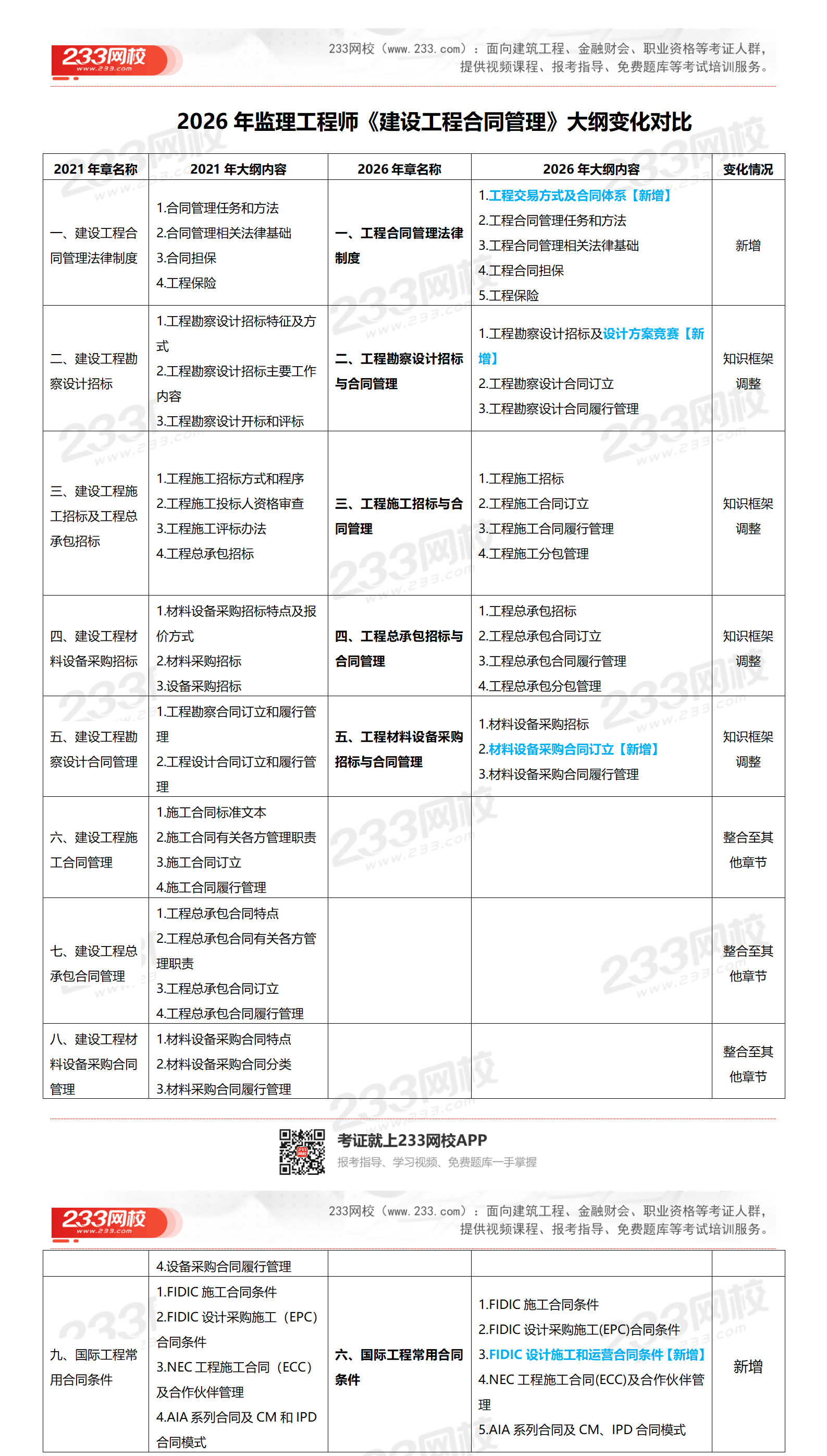★【233网校总结】2026年考纲和2021年考纲相比,整体框架进行调整,新增知识约12%,由原来的9章变成6章。核心知识点变化不大。新增了3.5节知识点。