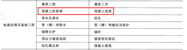 (2)普通混凝土工程、碾压混凝土工程、混凝土面板工程、防渗墙工程、钻孔灌注桩工程等的混凝土浇筑工序。