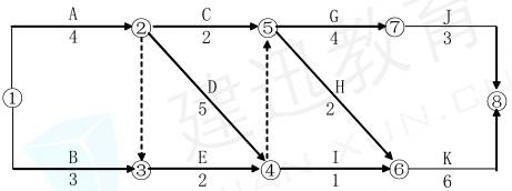 8.某工程双代号网络计划如下图所示,其中工作G的最早开始时间为( )。