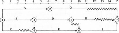 46、 某工程双代号时标网络计划如下图所示,其关键线路为( )。