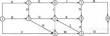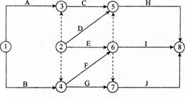 85、 某分部工程中各项工作间逻辑关系见下表,相应的双代号网络计划如下图所示,图中错误的有( )。