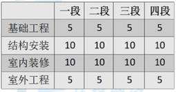 总工期为:T0=(5+10+25)+4×5=60周