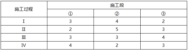 1、某工程有4个施工过程,划分为3个施工段组织流水施工,各施工过程在各施工段上的流水节拍(天)见下表,第Ⅱ和第Ⅲ两个施工过程之间有3天的工艺间歇时间,则该工程的流水施工工期是( )天。