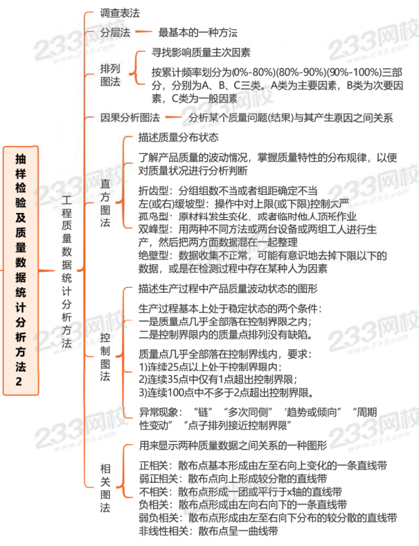思维导图:抽样检验及质量数据统计分析方法