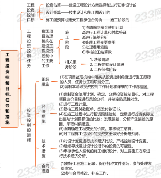思维导图:工程投资控制目标、任务和措施