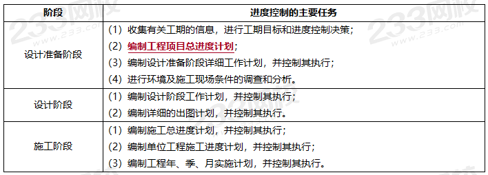 选项B错误,属于设计阶段进度控制的任务。