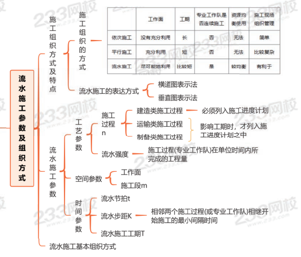 思维导图:流水施工参数及组织方式