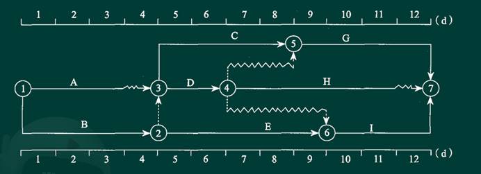 6、某工程双代号时标网络计划如下图所示,该计划表明( )。