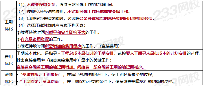 1)在优化过程中,不改变网络计划中各项工作之间的逻辑关系;选项A错误