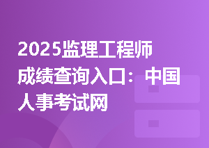 2025年监理工程师考试成绩查询入口:中国人事考试网。温馨提醒:点击下方233网校监理工程师成绩快速查询入口,可直达中国人事考试网,快速查询到成绩。↓2025年监理工程师成绩查询入口↓2025监理成绩查询流程第一步:进入中国人事考试网首页,点击左侧导航的第三项:成绩查询。第二步:登录全国专业技术人员资格考试报名服务平台,使用报名时的用户名和密码,登录全国专业技术人员资格考试报名服务平台。第三步:进入考试列表,选择2025年,监理工程师职业资格考试(5月),出现查询结果。↓如下图所示↓注:考试右侧查看更多>