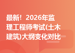 2026年1月16日,住建部发布了关于全国监理工程师职业资格考试大纲(2026年版)的公告,变化大不大?233网校为此进行了新旧大纲对比,一起来看看!插入模块1、建设工程监理基本理论和相关法规★【233网校总结】2026年考纲和2021年考纲相比,整体框架进行调整,新增知识约10%,由原来的11章变成10章。核心知识点未变化。新教材出版前学25年精讲不影响。点击下载2026年监理法规考试大纲>>2、建设工程合同管理★【233网校总结】2026年考纲和2021年考纲相比,整体框架进行调查看更多>