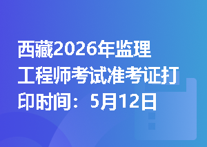 从《西藏2026年监理工程师报名考务工作通知》得知,2026年西藏监理工程师准考证打印时间:5月12日-15日。打印官网为中国人事考试网,待打印入口开通之后,登录中国人事考试网--准考证打印栏目进行打印。准考证是进入考场的重要凭证之一,注意请在规定时间内进行打印,不能提前或者逾期打印。【西藏监理准考证打印入口】2026年西藏监理工程师考试准考证打印流程进入中国人事考试网→准考证打印界面→选择“监理工程师考试”→选择报名省份、填写姓名等信息→按说明完成准考证打印。第一步:进入准考证打印网站【点击进查看更多>