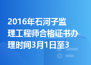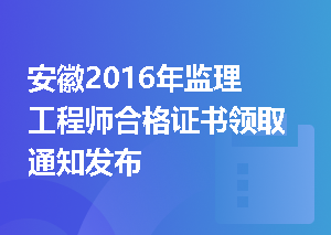 关于领取2016年度监理工程师合格证书的通知各位考生:2016年度监理工程师省直考点合格证书已印制完毕,请考生按属地原则咨询领取合格证书。请报名点为各市的考生,与本市人社部门联系。请报名点为省直的考生携带本人身份证件到省政务中心C3楼二楼4号大厅人力资源和社会保障厅窗口办理领取手续。安徽省人事考试院2016年09月22日查看更多>