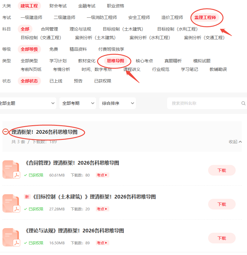 下载方式一:进入监理资料包按科目下载,点击进入监理资料包>>