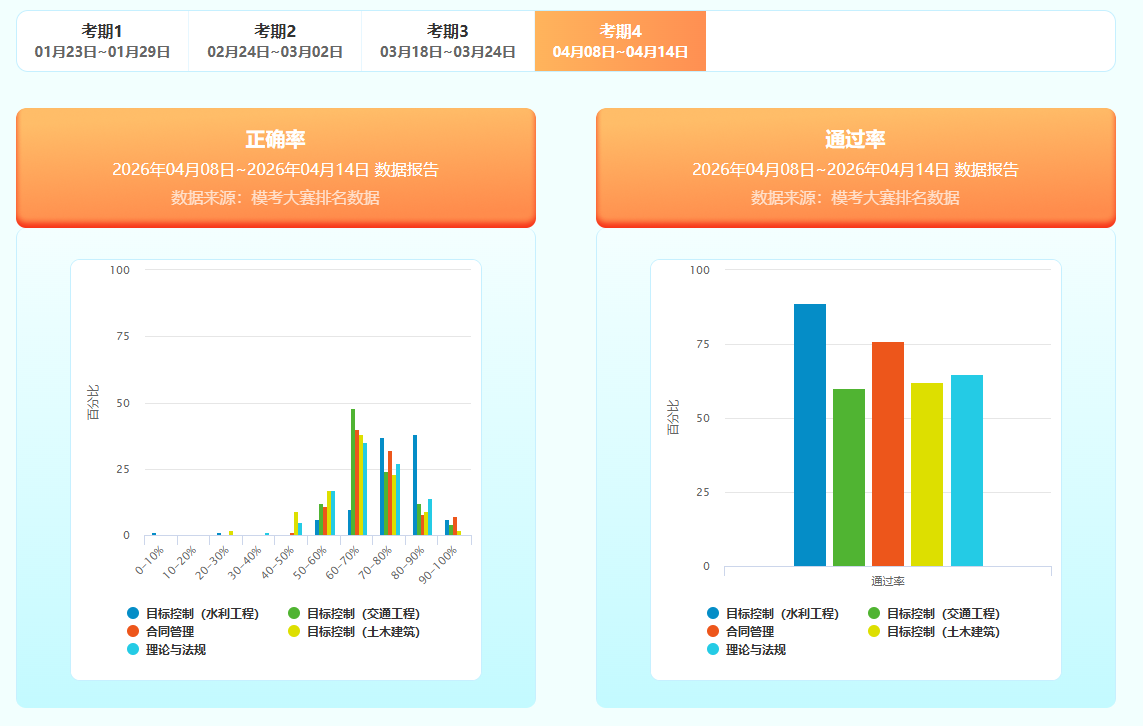 从2026监理工程师4月模考大赛排名数据来看(见下图),正确率大概在60%-80%,如果错过模考,也可以进行补考,只是成绩不再参与排名。