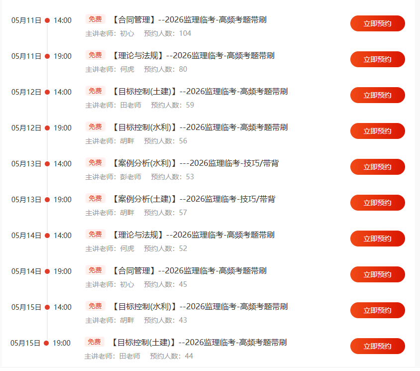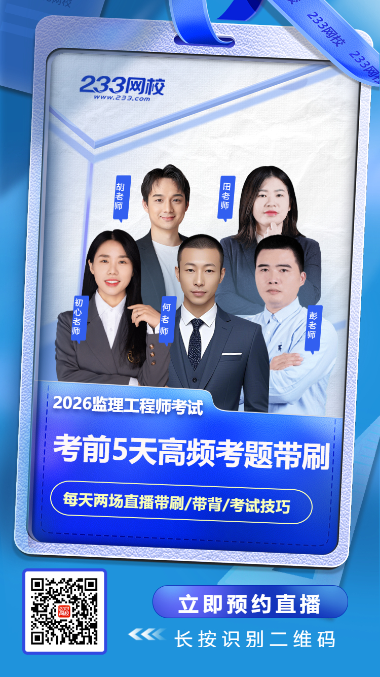 距离2026年监理工程师考试仅剩最后半个多月,你是否感觉知识点繁多、时间紧迫、复习无从下手?别再一个人孤军奋战了!5月11日起,233网校重磅启动“全程陪考冲刺计划”,用专业直播陪伴你走完考前、考中、考后的每一步,将有限的时间转化为实实在在的分数!