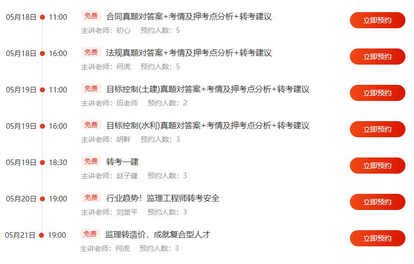 | 案例分析(土建) | 5月18日18:30起 | 梁毛 | 直播预约 |