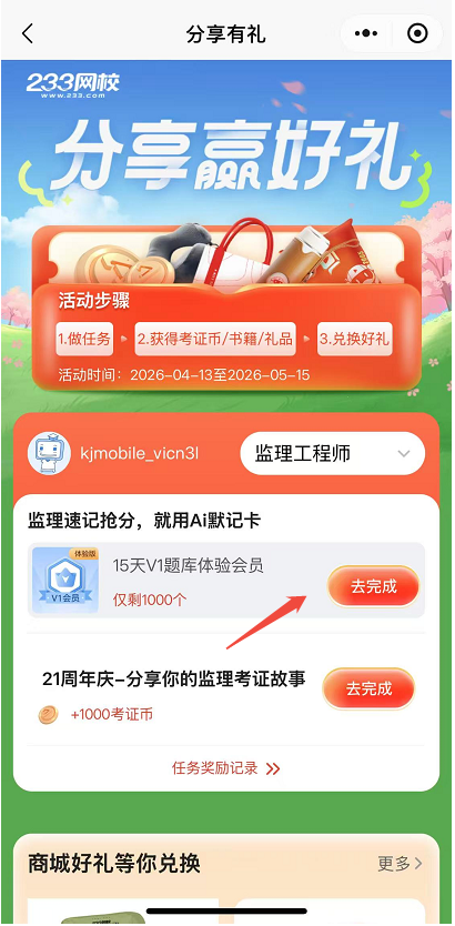 三、如何参与分享监理Ai默记卡领题库会员活动?