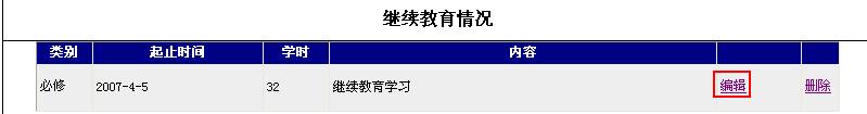 如果您填写了“继续教育情况”,想要对其进行编辑,请点击鼠标左键“编辑”按钮。