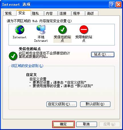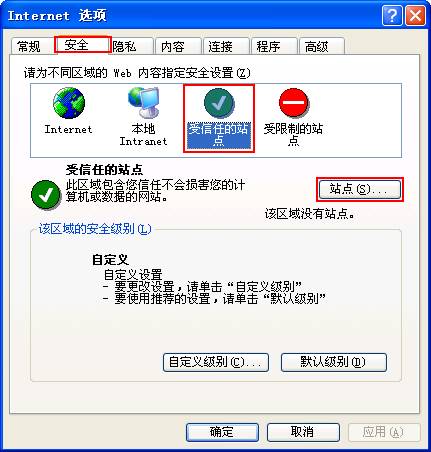选中“安全->受信任的站点”,然后点击“站点(S)...”