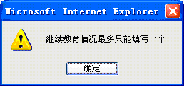 ![]() 继续教育情况只能填写10个,如果超过了10个就没法保存了。 | |
