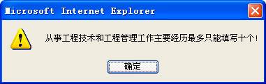 ![]() 从事工程技术和工程管理工作主要经历只能填写10个,如果超过了10个就没法保存了。 |