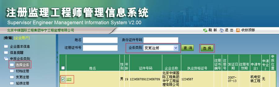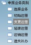 要进行完初始注册后,在“选择业务”中选择完人员,然后在“业务类别”选择“变更注册”点击“选择”按钮才能把人员转入到变更注册中去。然后才可以进行变更原因的填写。如图: